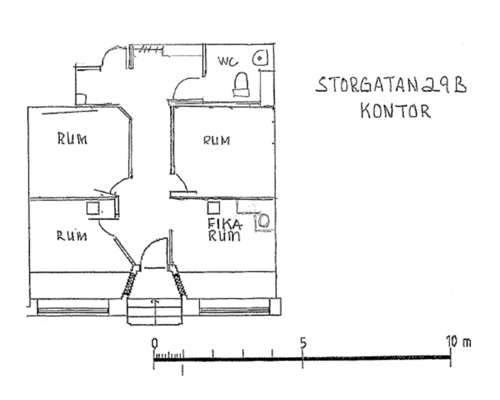 Beskrivning: Kontor med 3 rum, wc och fikarum/pentry. Ett av kontoren och fikarumet har skyltläge utmed Storgatan.